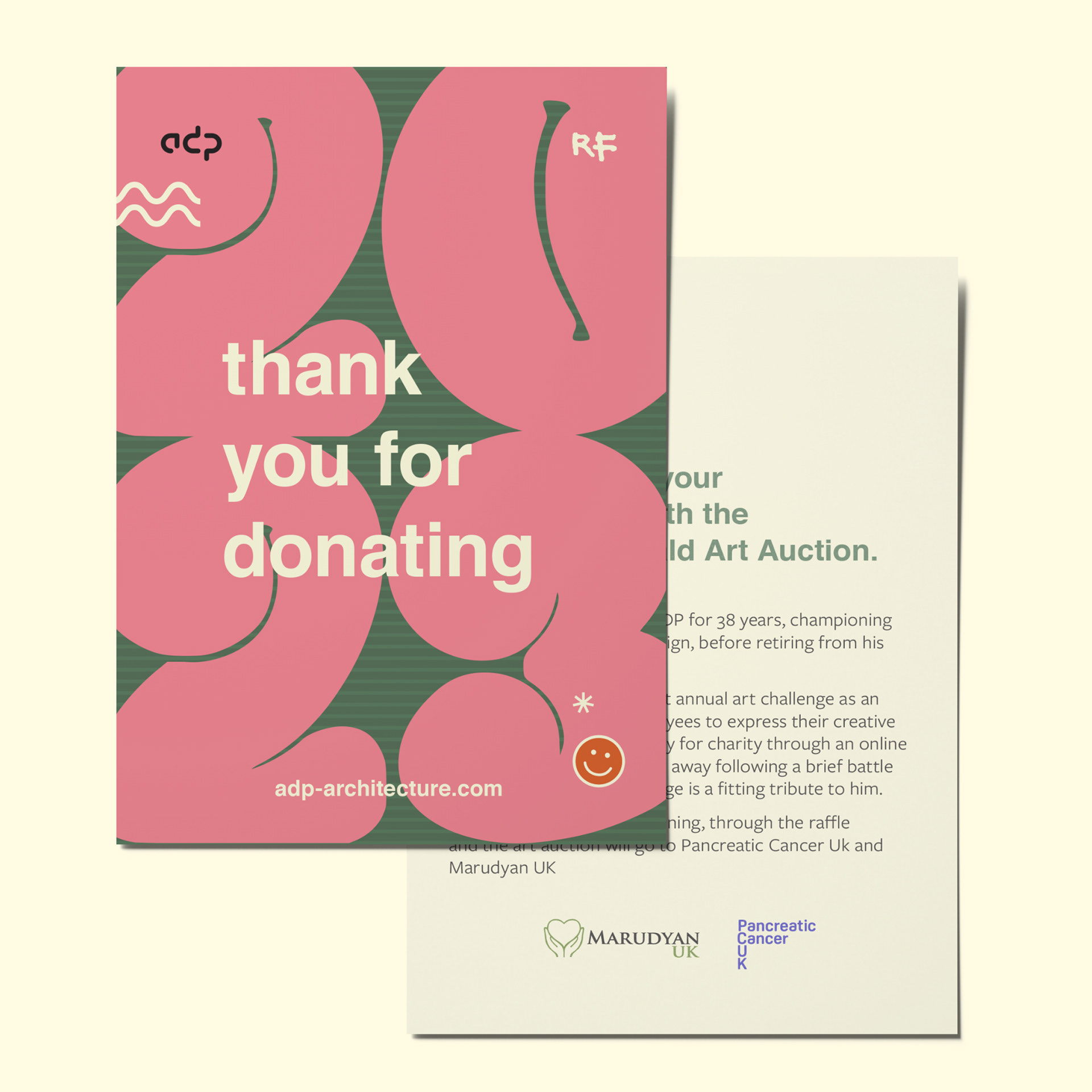 Branding was created for a charity art auction organised by ADP Architecture. The theme of the artwork was 'Joy'. I used colour and typography to portray this.
